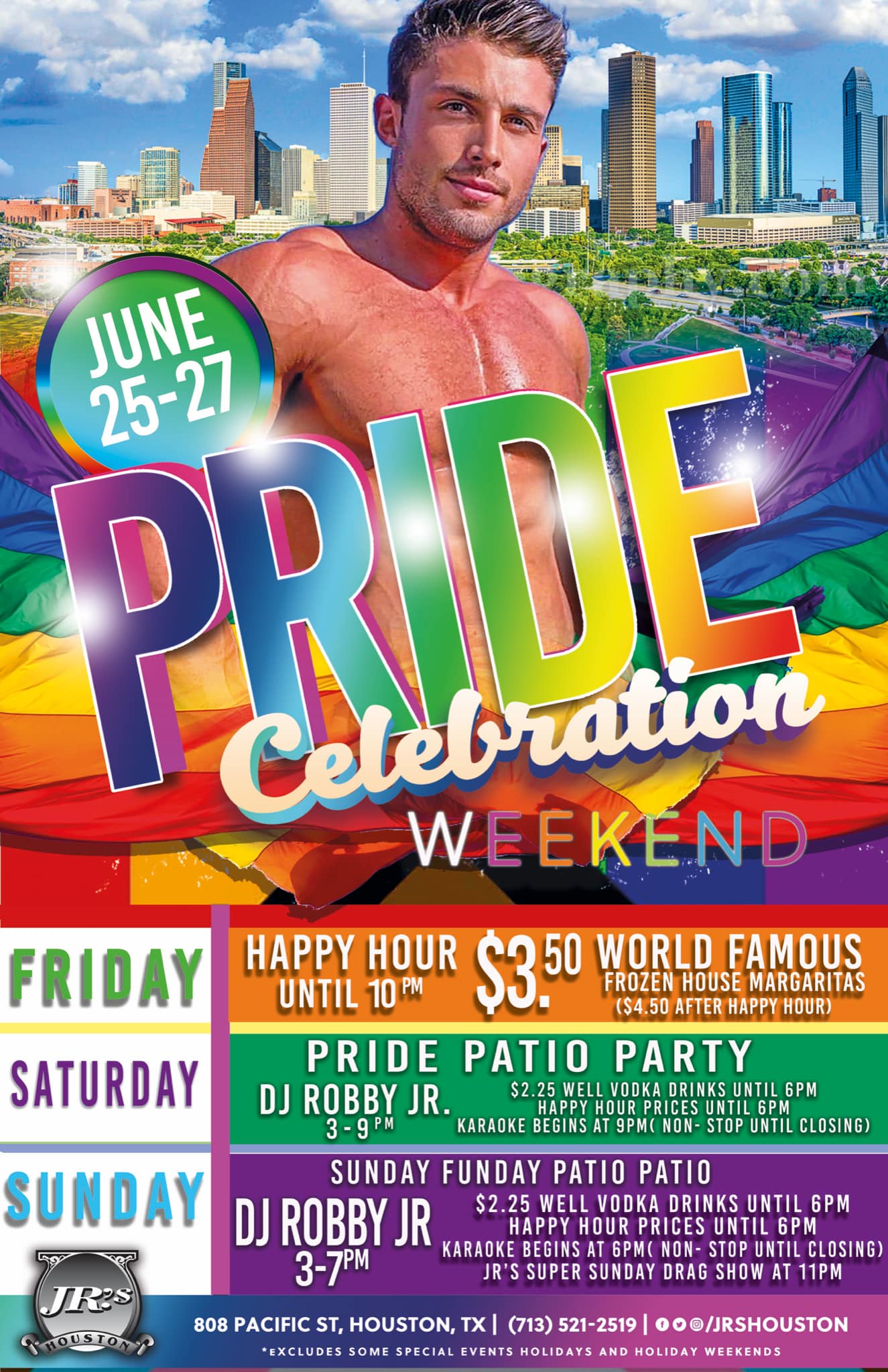 JR’s Houston Presents Pride Patio Party Featuring DJ Robby Jr. $2.25 well vodka drinks until 6pm Karaoke begins at 9pm […]