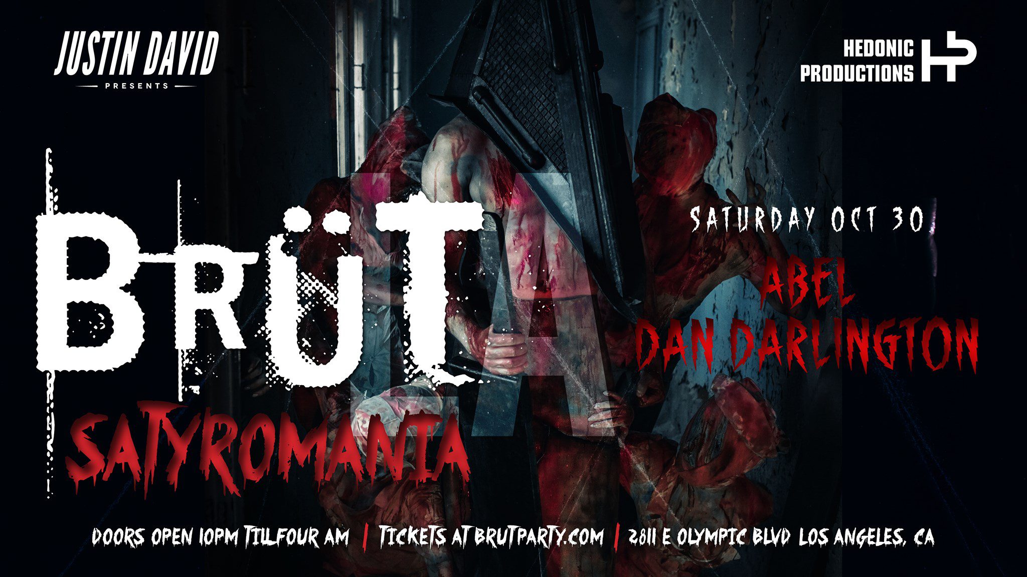 This is how Brüt does Halloween. Whether wings and wands, slut it up as we tie you up. We will be dancing and sweating all night so less is more and it is easier to place the straitjacket. Do you dare to enter the mind of a mad man hellbent on copulation and lust for this DEVIL’S NIGHT. We unshackle the freaks, as the nurses hook you up machine after machine, to burn impurity from your sick and twisted minds. DJs Dan Darlington and Abel will unbuckle those straps and release you to the demons in the psyche of the degenerat perves.
