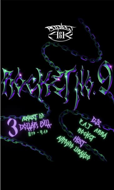 ROCKET NO. 9 descends back to 3 Dollar Bill on August 19th, and we are going deeper into the void. From 11:00pm to 4:00am we are dancing in the dark and exploring our true selves.