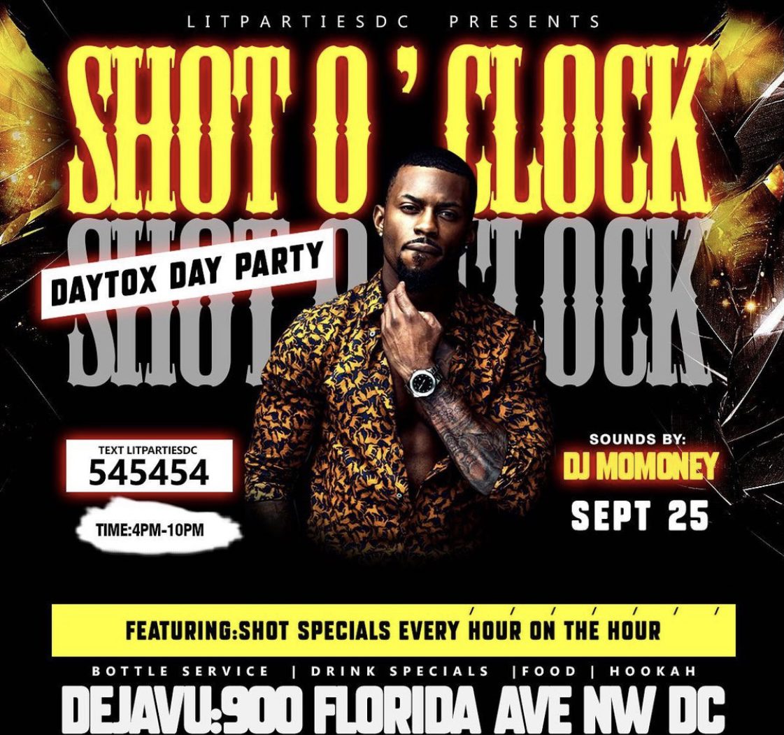 Featuring: shot specials every hour on the hour