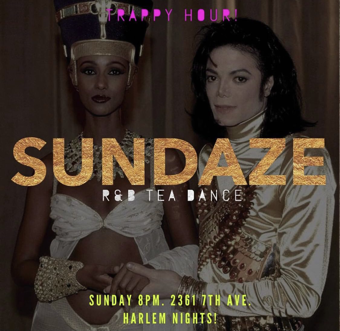 Sundaze R&B Tea Dance Details Date:Sunday, November 7, 2021 Time:8:00pm - 4:00am ET Category:Party Presented By:Trappy Hour VenueHarlem Nights Address:2361 7th Avenue, New York, NY 10027 Website: Add To Calendar Google Calendar Yahoo Calendar Share